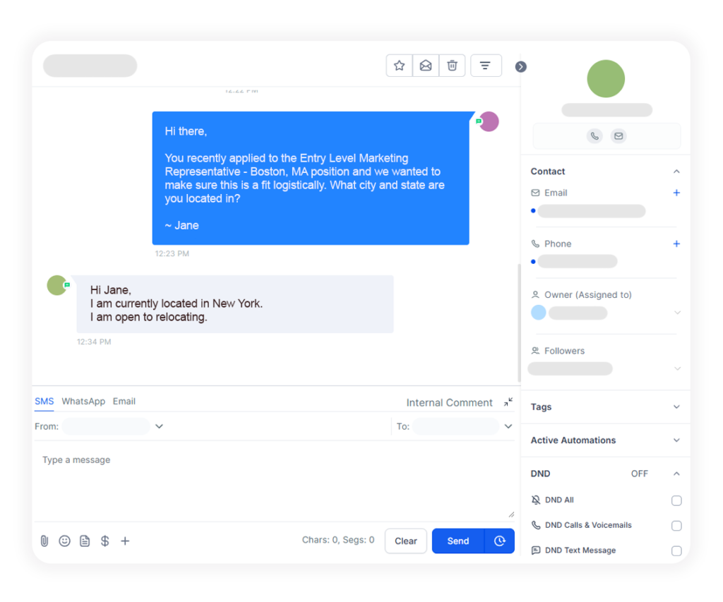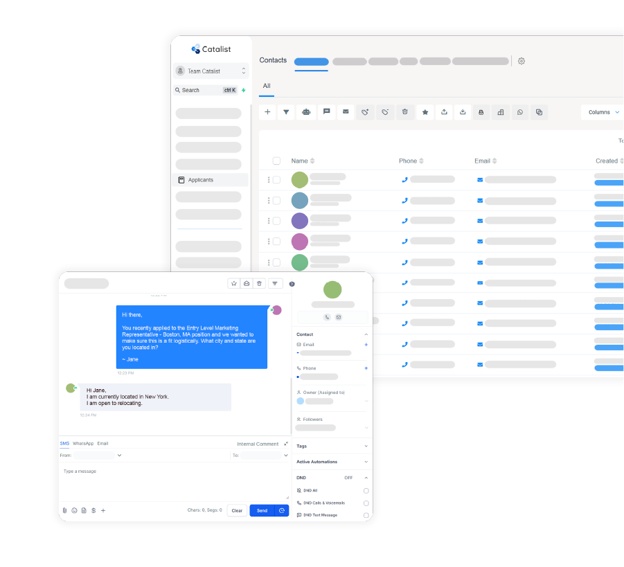 With Catalist, recruiters can text or email candidates directly from their profiles, making communication quick, personalized, and seamless.